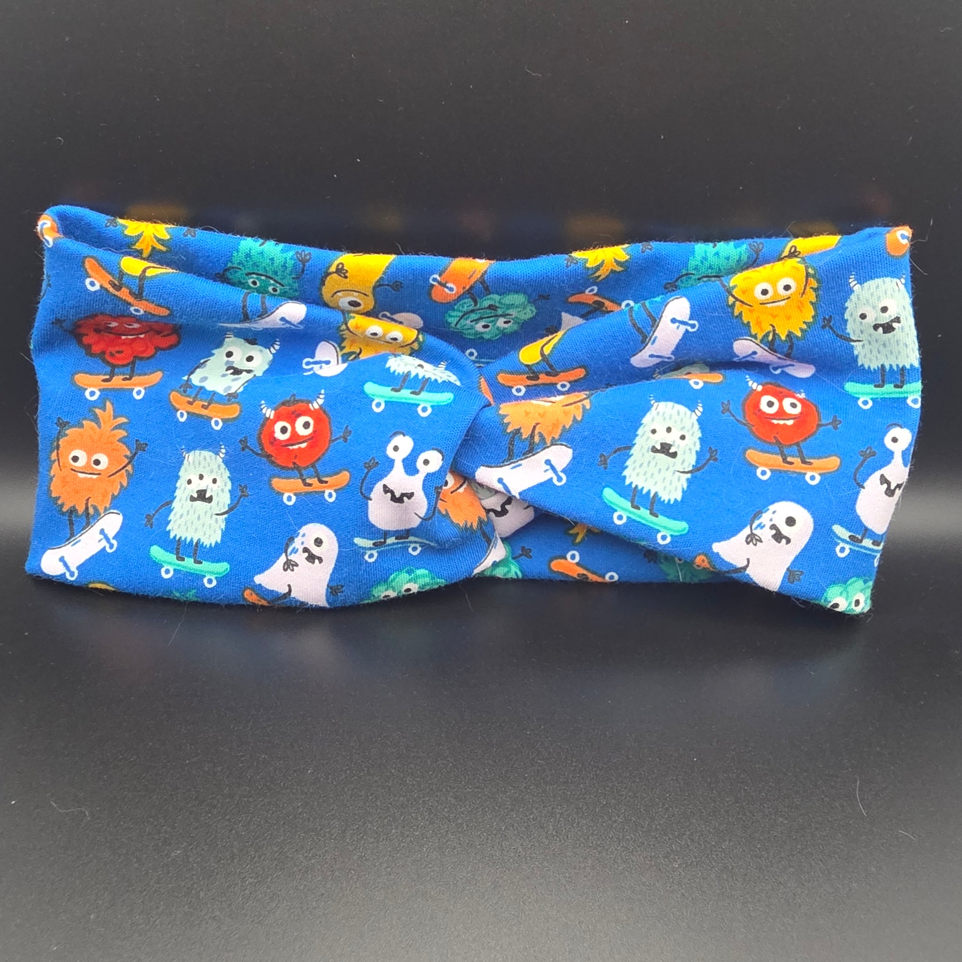 All headbands are stretchy, and are sewn with a stretchy material (Cotton Polyester). They all have a twist in the center, that you can either place on the top or back. They are one size fits all, with an adult average in mind.
