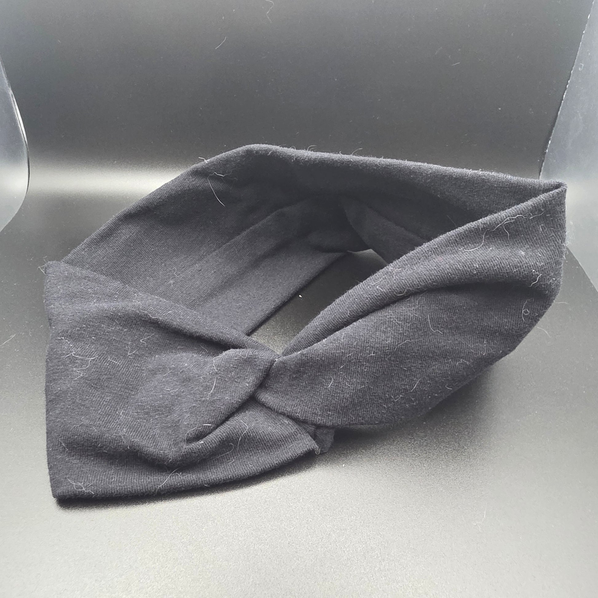All headbands are stretchy, and are sewn with a stretchy material (Cotton Polyester). They all have a twist in the center, that you can either place on the top or back. They are one size fits all, with an adult average in mind.