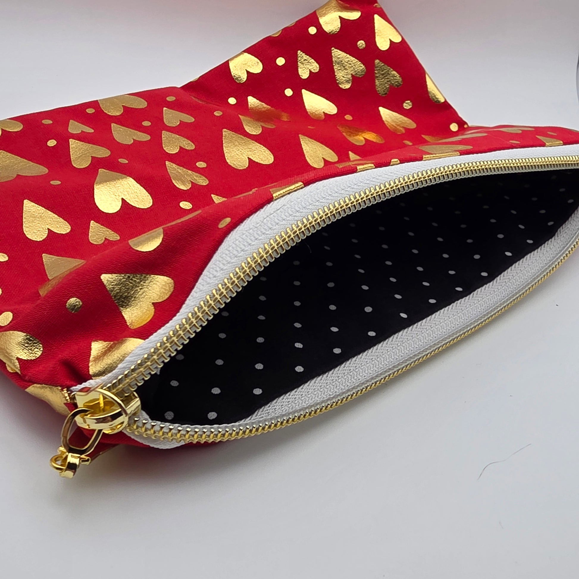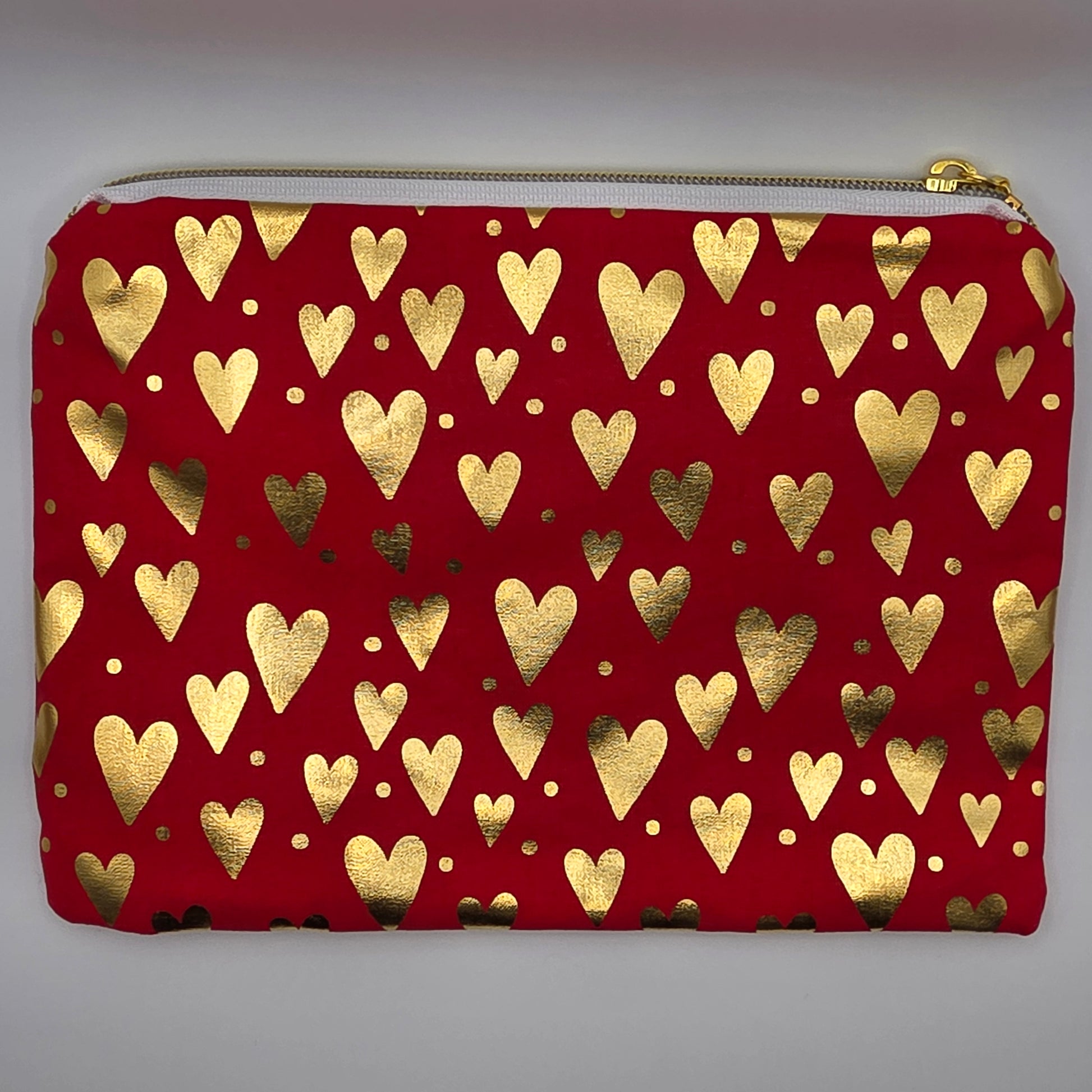 - Exterior is flannel. It is nice and soft. The internal is quilting cotton. The zipper base is a white, and the zipper head and teeth are gold.